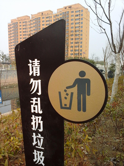 滿布園區(qū)公舍的“請勿亂扔垃圾”警示金屬提示牌邊角鋒利,原為溫馨提示,卻成了兒童玩耍時的安全隱患。