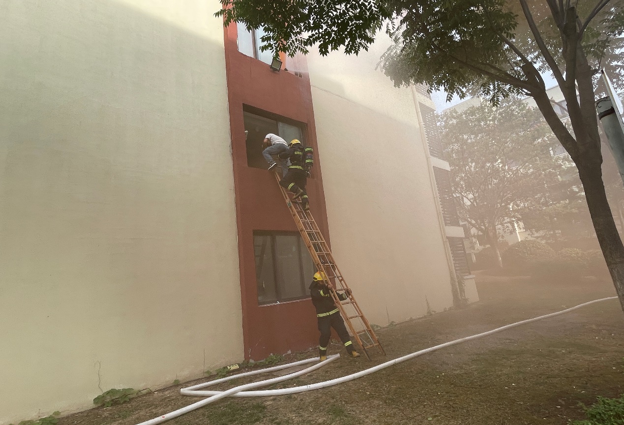 本次演練模擬的是電動自行車違規(guī)充電期間突發(fā)自燃的情景,園區(qū)公舍值班人員收到消防報警后,立即通知當(dāng)班安保隊長前往現(xiàn)場,核實后迅速啟動火災(zāi)應(yīng)急預(yù)案。演練過程中,園區(qū)公舍微型消防站義務(wù)消防員初期控制火勢發(fā)展,增援力量園區(qū)消防應(yīng)急救援大隊及時到場,各參演小組人員反應(yīng)迅速、處置規(guī)范、配合默契,最終成功將“火”撲滅,受困人員安全疏散至安全區(qū)域,達到了“快出警、能救援、善處置、保安全”的預(yù)定演練目標(biāo)。
