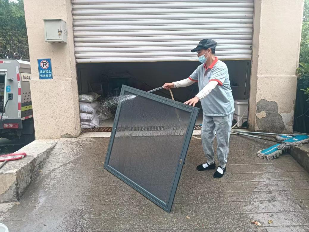 地墊、紗窗清洗區(qū)也備受居民歡迎,工作人員用高壓水槍、刷子等清洗工具,通過洗、刷、沖等環(huán)節(jié),灰撲撲的地墊、紗窗經(jīng)過“洗禮”后煥然一新。