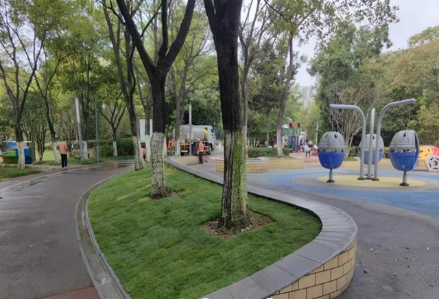 截至目前,在補(bǔ)植方面,補(bǔ)種草坪、麥冬3500平方米,補(bǔ)植大葉黃楊、金邊黃楊、紅葉石楠等2200平方米,補(bǔ)植各類喬木紫葉李、海棠、櫸樹等125株,撒播草坪草籽3.7萬平方米;在養(yǎng)護(hù)方面,修剪喬灌木1.1萬株、清理枯枝、死樹2500株,清理綠化帶落葉、雜物8.2萬平方米。