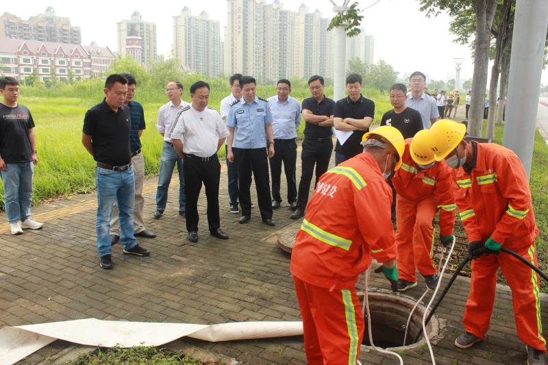 此次演練模擬宿遷市普降大雨,玄武湖西路部分道路出現(xiàn)積水,影響通行。面對險情,園區(qū)及時啟動防汛應急預案,應急搶險組迅速趕到現(xiàn)場,放置路障封鎖現(xiàn)場,安放警示標志提醒車輛繞道通行。隨后根據(jù)現(xiàn)場查勘迅速制定排水方案,對重點積水部位采取管道應急疏通、移動泵車抽排等措施。演練現(xiàn)場指揮順暢,緊張有序,經(jīng)過連續(xù)搶險作業(yè),水位迅速下降,路面積水基本排除,車輛恢復通行,最后對該段管道進行檢測排查,演練順利結束。