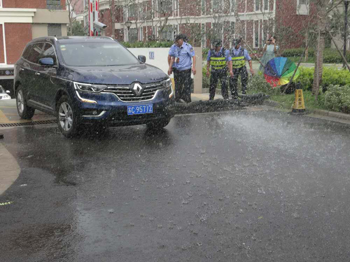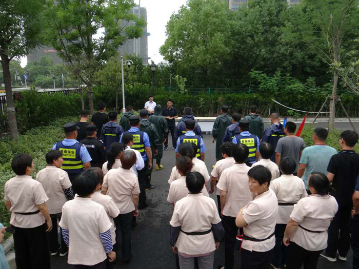 演練情景假設為下午3時突降暴雨,由于降雨量過大,現場地下停車場積水,存在車輛被淹的危險。在項目防汛應急小組指揮下,立即啟動了防汛應急預案, 24小時待命的各應急小組進入搶險狀態(tài),迅速分頭行動,疏散人員、設置擋水圍堰、抽排停車場積水,圓滿完成防汛應急搶險。