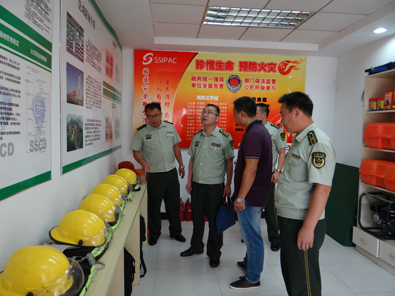 7月19日上午,宿遷市消防支隊副支隊長丁遠營到園區(qū)檢查夏季消防安全工作,園區(qū)消防大隊大隊長宗靈明、園區(qū)公舍安全負責人陪同檢查。
