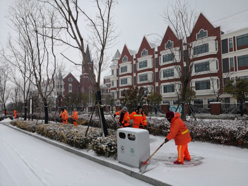 此次掃雪除冰,蘇宿園區(qū)共出動環(huán)衛(wèi)工人近200人,城管隊員4人,其它人員約50人,雪鏟車1輛,平地機1輛,皮卡車7輛,運輸車1輛,融雪劑10噸,人工除雪工具若干。