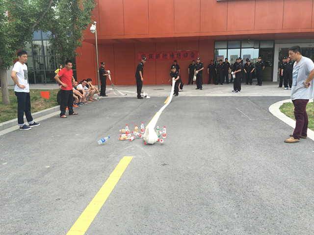 趣味運動會在歡樂的氣氛中進(jìn)行,趣味運動會項目共有拔河、跳繩、往返跑、消防“保齡球”4個比賽項目。各項比賽都扣人心弦,趣味盎然,精彩場面隨處可見。比賽中每個項目都突出了“樂”字,參賽者“玩”得開心,觀眾看得開心,加油聲此起彼伏,安保人員相互間協(xié)作,共同完成各項比賽。