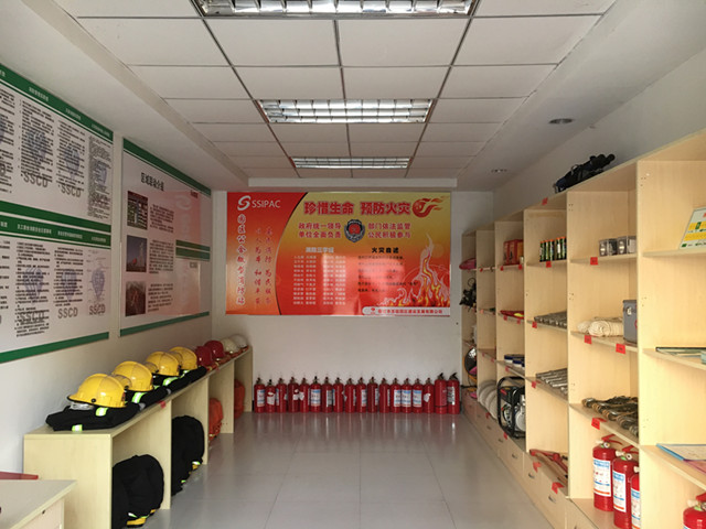 園區(qū)公舍微型消防站位于公舍8號樓,建發(fā)公司安保中心、安民物業(yè)保安員共同組建了6人制微型消防站,該站配備了基本的滅火器材及個人防護(hù)裝備,并實行24小時值守制度。