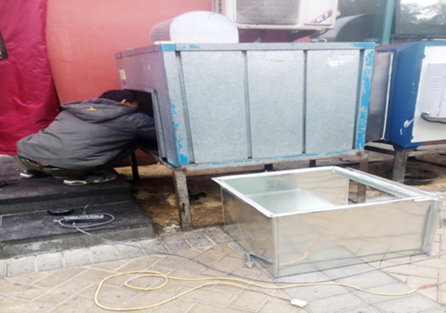 1月11日下午2時(shí),正處于午飯結(jié)束,發(fā)現(xiàn)師傅們正在對(duì)2家商戶油煙管道進(jìn)行整改。